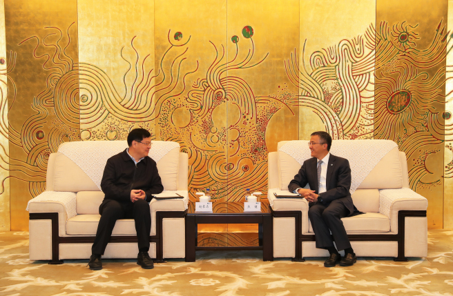 10月31日,中国中化总经理、党组副书记焦健在京会见来访的青岛市委副书记、市长赵豪志一行,双方重点就城市运营和石油化工等领域合作进行交流。焦健对赵豪志一行表示欢迎,并介绍了中国中化业务发展情况。他表示,青岛市与中国中化有着深厚的合作基础,在生命科学、石油化工、化工新材料等领域,双方发展理念高度契合,希望双方继续全面深化合作,共走高质量发展之路,共谱央地合作篇章。赵豪志介绍了青岛市的营商环境政策,希