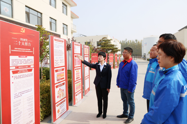 近日,公司围绕学习贯彻党的二十大精神主题,构建多维度、立体化宣传格局,在广大干部员工中掀起学习热潮。党的二十大闭幕后,党的二十大代表、公司员工张雪枚在中国中化、中化能源、中化石油销售本部分享参会感受、学习体会,并深入基层一线油站、油库宣讲党的二十大精神,与各单位先进人物代表、一线员工座谈交流,掀起一线员工学习热潮。下一步,张雪枚还将赴泉州石化、中化岙山等地,开展多种形式宣讲,让党的二十大精神在基层