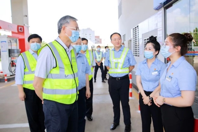 在福建石油所属泉州市惠安后建加油站检查调研期间,李凡荣详细了解油站投资布局、群组改革、油品销售、安全管理、党建工作等情况,慰问高温下坚守岗位的一线员工,对福建石油多年深耕福建成品油市场的工作表示肯定,希望与泉州石化等在闽中化单位协同发展,促进公司的高质量发展,为当地经济发展和人民幸福多作贡献。