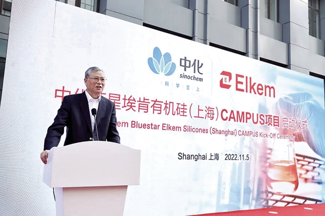 随后,李凡荣出席中化蓝星埃肯有机硅亚太区研发中心项目启动仪式。在仪式上,李凡荣指出,有机硅新材料发展前景广阔,期待研发中心建成后,加快关键核心技术攻关,提高科技成果转化和产业化水平,支撑埃肯未来业务发展,并在中国中化高端化工新材料产业中发挥中流砥柱作用。