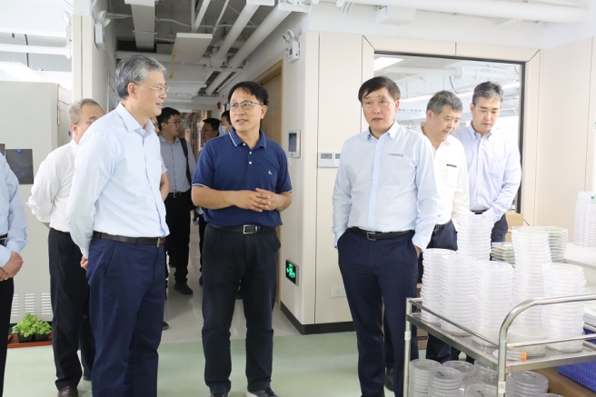 在崖州湾种子实验室,李凡荣一行沿着习近平总书记2022年南繁考察足迹,重温习近平总书记重要讲话并与种业研发骨干座谈交流。