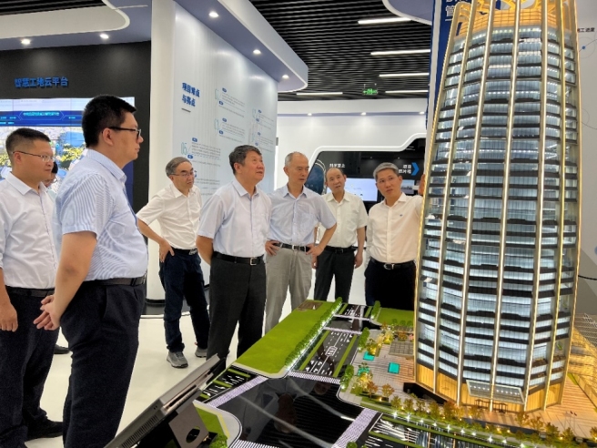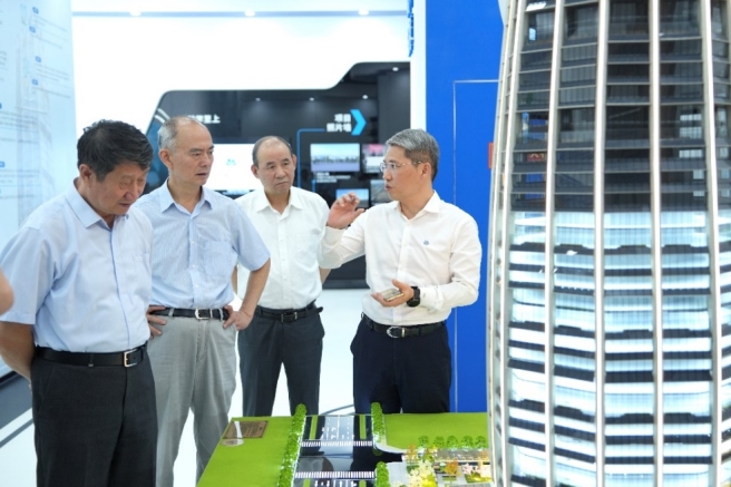 外部董事在中国中化总部大厦现场及项目智慧体验中心进行实地调研。在听取项目建设情况介绍的同时,不时询问项目功能规划、安全质量、节能环保等方面情况。