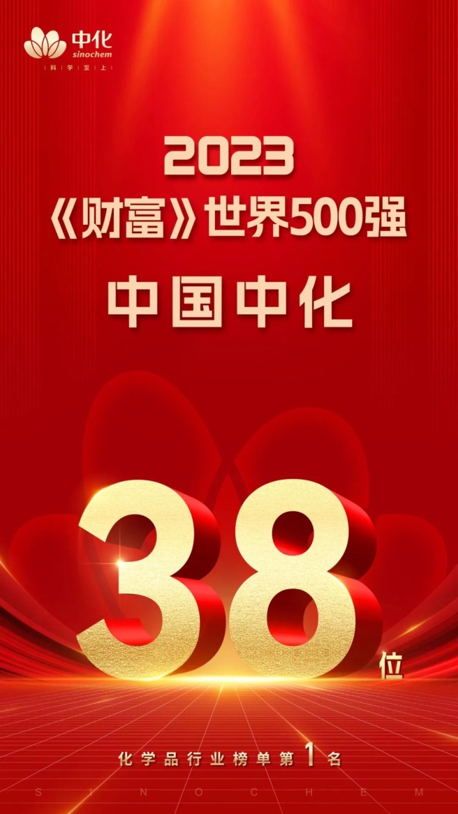 北京时间8月2日,《财富》杂志发布2023年“世界500强”榜单,中国中化排名38位。2022年是公司成立后的首个完整运营年,公司业务深度整合,取得可喜成绩。据《财富》杂志同时发布的分行业榜单,中国中化位居化学品行业榜单第1位。