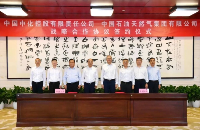 8月17日,中国中化与中国石油在京签署战略合作协议,双方以习近平新时代中国特色社会主义思想为指导,积极开展高质量合作推动高质量发展。中国中化董事长、党组书记李凡荣,中国石油集团董事长、党组书记戴厚良等见证双方签约,中国中化董事、总经理、党组副书记焦健与中国石油集团董事、总经理、党组副书记侯启军代表双方签署协议。