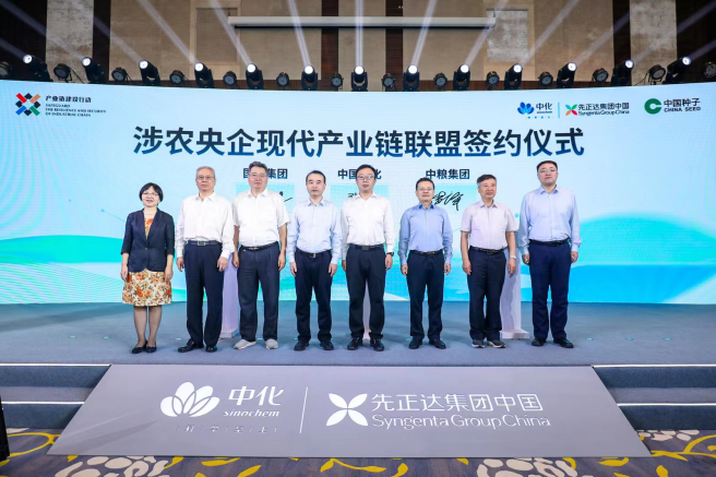 为构建具有完整性、先进性、安全性的现代化产业体系,中国中化、国机集团、中粮集团分别作为种业、农机、粮食产业链建设的行业领先企业,签署涉农央企现代产业链建设联盟倡议书。联盟将充分发挥各自优势开展实质性合作,共同构建农业现代化产业体系,增强现代农业产业链供应链韧性和稳定性。